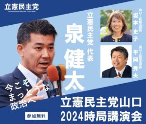 定員は先着150人。申し込みを希望される方はコチラをクリックしてください。問い合わせは、立憲民主党山口(TEL083-933-0839)へ。
