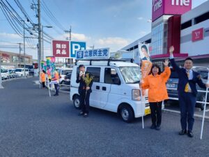 3月8日(金)は国際女性デー。立憲民主党山口県第2区総支部では、午前は岩国市内、午後は周南市内で街頭宣伝活動を行いました。