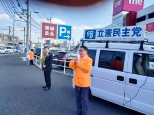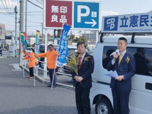 3月8日(金)は国際女性デー。立憲民主党山口県第2区総支部では、午前は岩国市内、午後は周南市内で街頭宣伝活動を行いました。
