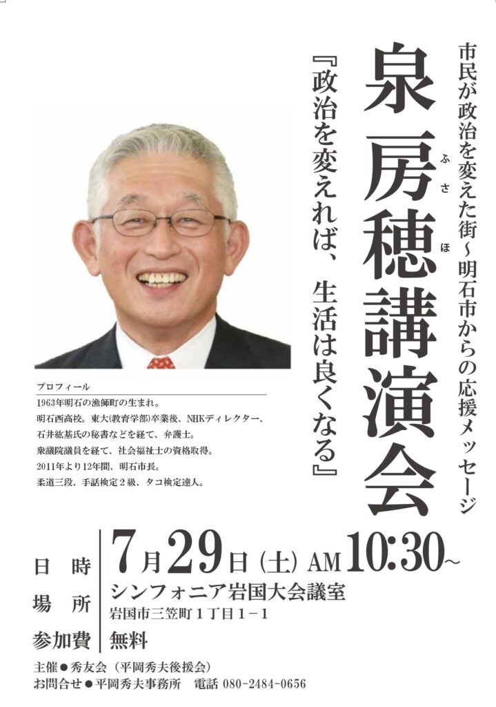 泉房穂氏講演会のお知らせ