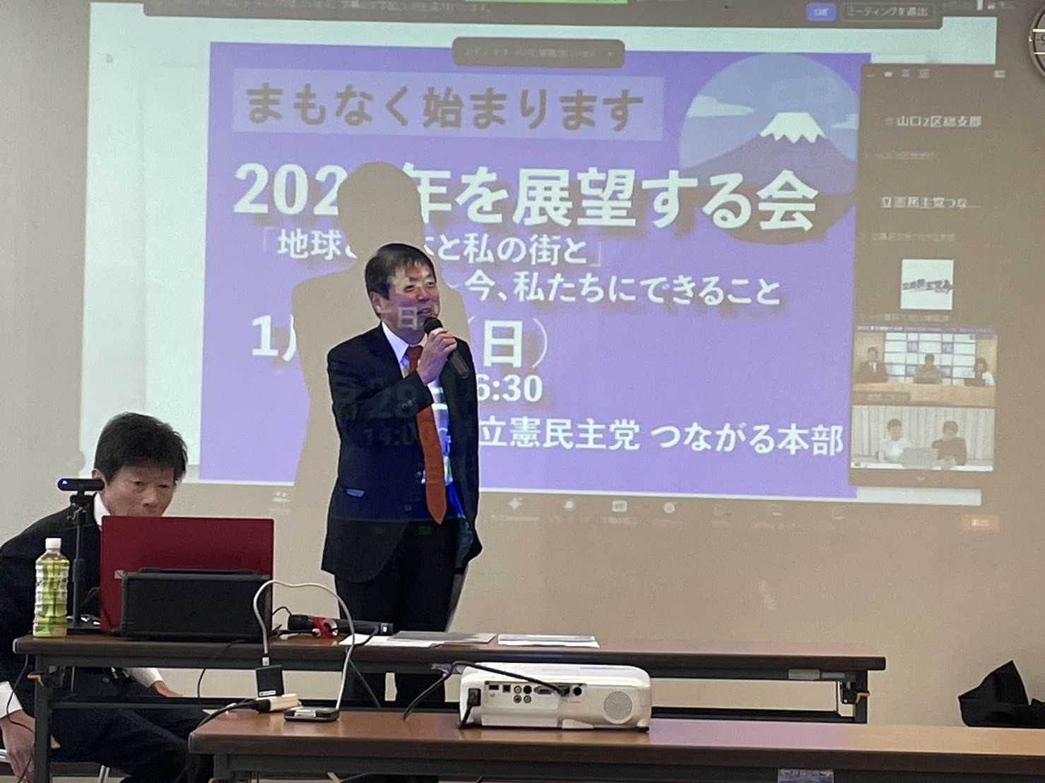 立憲民主党「2024年を展望する会」がZOOMで開かれ、山口県第2区総支部では、柳井市にサテライト会場を設け近隣の皆さんに参加していただきました。