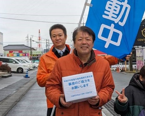 能登半島地震被災者支援の街頭募金を行いました。 新着情報 2024.01.22 1月20日岩国市内において、まずは自分たちのすぐにできる活動から始めようと街頭で募金活動を行いました。買い物途中などの多くの方にご協力いただきました。 現在、平岡秀夫事務所でも受け付けています。ぜひ、ご協力よろしくお願い致します。